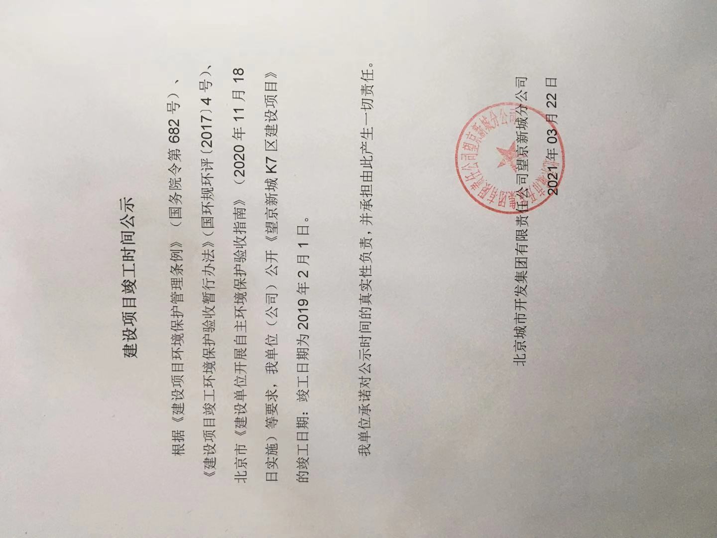 《望京新城K7區(qū)建設項目環(huán)境影響報告書》于2002年12月完成;2002年12月18日獲得《北京市環(huán)境保護局關于望京新城K7區(qū)建設項目環(huán)境影響報告書的批復》(京環(huán)保監(jiān)督審字[2002]456號)。